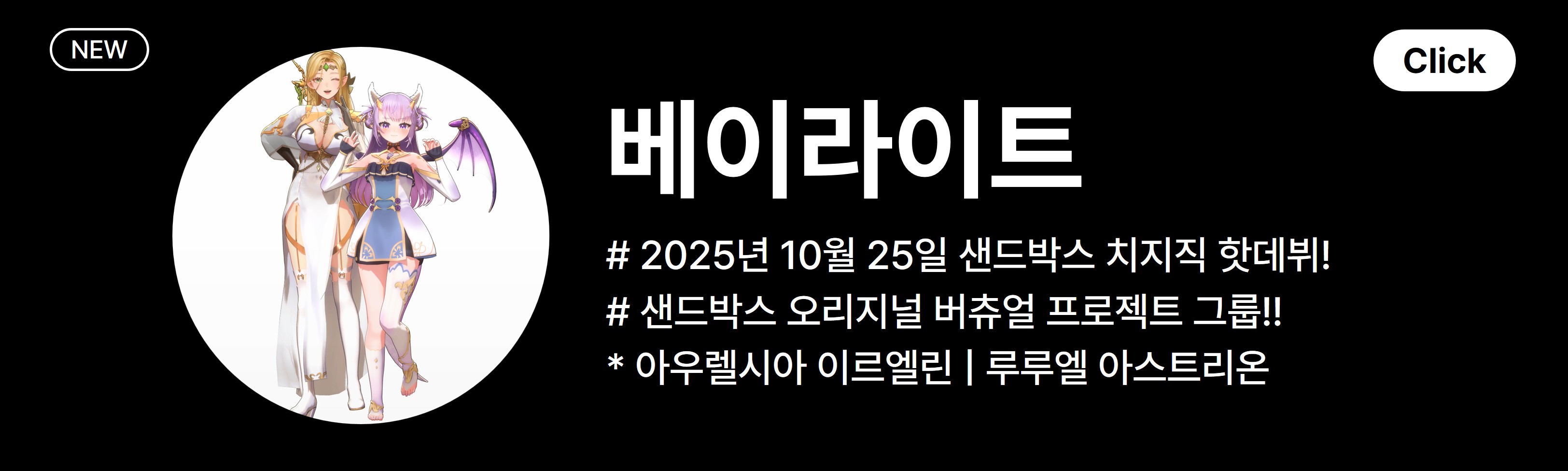 🧚♀️ UR:L(유아렐), 베이라이트 — 샌드박스가 기획한 버추얼 크리에이터 그룹. 니치한 서브컬쳐 시장을 타겟하는 각각의 세계관과 퍼스널리티로 트렌드를 직접 만들어내며 Vtuber 산업의 새로운 흐름을 주도합니다.